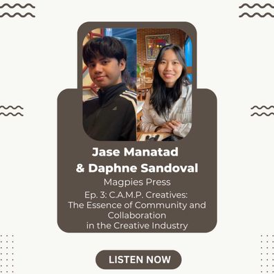 Through our cultural workers' eyes. In this podcast episode entitled C.A.M.P. Creatives: The Essence of Community and Collaboration in our creative industries, we got to hear from Daphne Sandoval and Jase Manatad of Magpies Press. By highlighting the rich culture and arts of Los Baños as exhibited by its student-centeredness and collaborative nature, they emphasized the importance of community in art-making as well as the vitality of making art accessible -- especially through zines and conversations. They talked about the goals and creative practices of Magpies as a collective, their experiences as well as personal motivations as culture and arts workers. They ended the podcast with advice to all aspiring culture and arts workers.