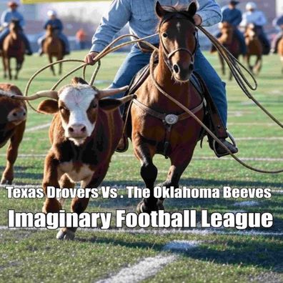 The Texas Drovers take on the Oklahoma Beeves in a life exciting time loving football stomping horse riding lassoing time