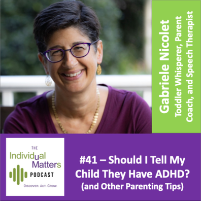 Gabriele Nicolet ("Toddler Whisperer", Parent Coach, and Speech-Language Therapist) discusses the important decision of whether to tell your child they have a diagnosis such as ADHD.