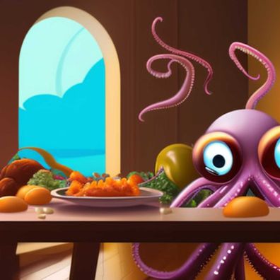 בסיפור של היום קדן בחרה תמנון כדמות, לטומי לקח קצת זמן, אבל לבסוף הצלחנו וביחד החלטנו על חדר אוכל 🐙🥙🥗🥞🍰