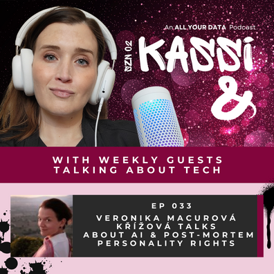 In this tech podcast, Kassi Burns, an attorney and co-founder of All Your Data, welcomes Veronika Macurová Křížová, an IP lawyer with an international background who holds a doctorate from Charles University in Prague and a Master of Laws from UC Berkeley in California. Veronika is a member of the U.S. Department of State & Atlantic Council's AI Connect II program. She specializes in AI, Law & Ethics with a focus on copyright and personality rights and is frequent AI speaker and consultant. Veronika helps bridge the gap between legal aspects of AI, media and creative fields such as film, performing arts, fashion, visual arts, interactive entertainment, and education.