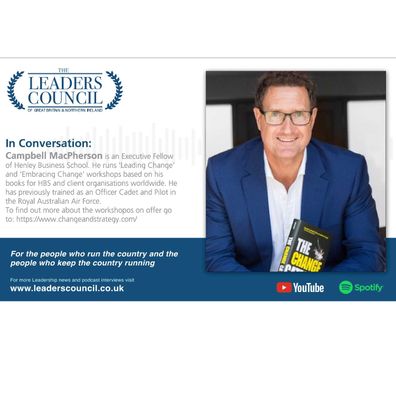 Campbell MacPherson is an Executive Fellow of Henley Business School. He runs ‘Leading Change’ and ‘Embracing Change’ workshops based on his books for HBS and client organisations worldwide. He has previously trained as an Officer Cadet and Pilot in the Royal Australian Air Force.