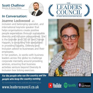 Joanne Lockwood an inclusion and belonging specialist, and international keynote speaker that helps organisations create positive people experiences through sustainable diversity and inclusion programmes. She is the founder and CEO of See Change Happen, a consulting firm specialised in providing Equality, Diversity and Inclusion advice to businesses and their employees.
