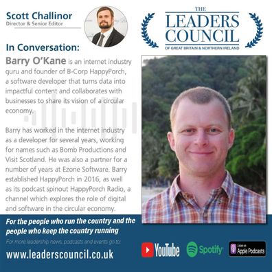 Barry O’Kane is an internet industry guru and founder of B-Corp HappyPorch, a software developer that turns data into impactful content and collaborates with businesses to share its vision of a circular economy.