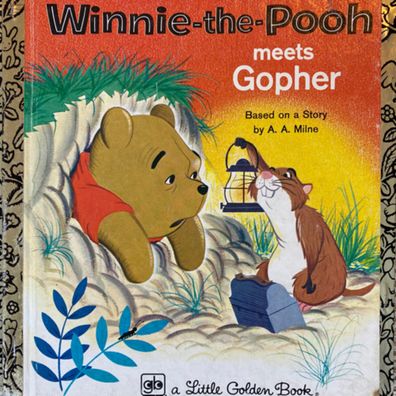 Pooh visits rabbit and eats so much that he gets stuck on the way out. Gopher comes to help get him out of the hole, but it takes all of his friends to eventually pull him out.