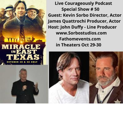 John’s guests on his 50th show are Kevin Sorbo and James Quattrochi announcing theTheatrical Release of the Feature Film “Miracle in East Texas” Oct 29 & 30 (FathomRelease).Sorbo received international stardom when he booked the lead role in “Hercules,the Legendary Journeys”, which became the most watched TV show in the world.Sorbo also starred alongside Dennis Quaid and Helen Hunt in “Soul Surfer”, andthe faith-based movie, “God’s Not Dead”. “Let There Be Light” was a movie he directed/acted/produced and this faith/family movie ranked number 4 out of the top 10 family movies of 2018.“Miracle in East Texas”, a Comedy based on a true story set in 1930 was anothermovie Sorbo directed/acted in. Movie also stars John Ratzenberger, Lou Gossett,Jr ...