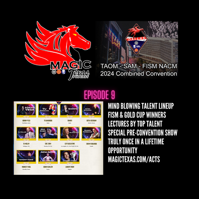 The 9th episode of 13 Minutes to Magic Texas Host Scott Wells and Co-host Dal Sanders introduce Michael Miller, Talent Coordinator for the Magic Texas convention. Michael previews the amazing list of international talent coming to Magic Texas, Labor Day weekend 2024. FISM Winners, Gold Cup Winners and SAM Contest Winners. Plus, several of the performers will be lecturing. You can see the talent lineup at https://magictexas.com/acts. We can't wait for you to see: Adrian Vega, Yu Komohara, Shimpei, Artem Shchukin, BJ Mallen, Eric Chien, Shawn Farquhar, Nobert Ferré, Adrien Quillien, Laurent Piron, and more. Register today at https://magictexas.com