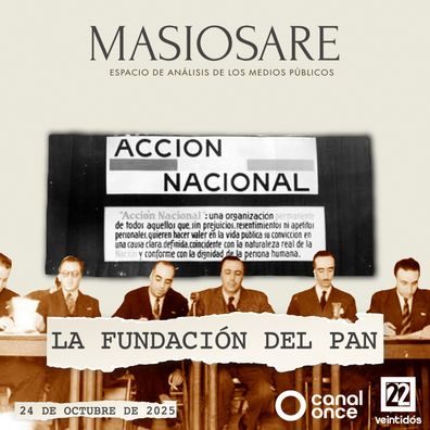 Masiosare es la barra de opinión de los medios públicos donde se discutirán y analizarán los temas que ocupan a la vida pública nacional e internacional, desde el periodismo, la economía, el derecho, los discursos y la historia. Esta noche nuestros panelistas Karla Motte, Sara Hidalgo, Cristina Gómez, y el Doctor Lorenzo Meyer hablarán sobre el origen del PAN y su papel en la política nacional: ¿alternativa democrática o satélite del oficialismo?