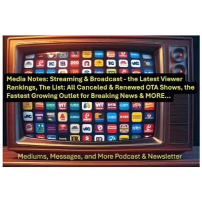 In this Media Notes edition of the podcast, we go deep into the data and discuss the research concerning the most popular media channels for breaking news, including the fastest growing source in popularity. Plus, the broadcast television season is over and we have a clear champion as we look into the numbers and also do a complete review of all the shows cancelled or renewed for the upcoming season.
