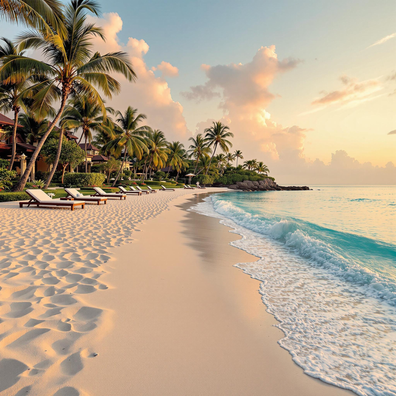 🌊 Gentle waves whispering against powder-soft sand