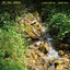 Tra i fiori illuminati a chiazze dai raggi che penetrano le chiome degli alberi, il corso d’acqua che scende a valle croscia in una piccola cascata.