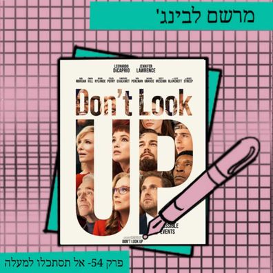 אופק זוהר, מאגי ונעם טיילור נפגשות לשוחח על "אל תסתכלו למעלה", סאטירה שעוסקת בסוף העולם. נשוחח על התפיסה של האישה ההיסטרית, רגעים אלגוריים, האם הסרט על הקורונה או על משבר האקלים, סגנון הסרט, פלגנות ומה קשור בכלל דיבוב לעברית?