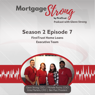 Season 2 Episode 7 of the "Mortgage Strong" Podcast is out now! Listen in to hear from FirstTrust's Executive team: Glenn Strong, CEO; Ben Paul, President; Ericka Martens, CFO; and Michelle Rocha, COO. In this episode the Executive team talks about their roles on a daily basis, how the first half of 2024 has shaped out, and their goals for the end of the year.