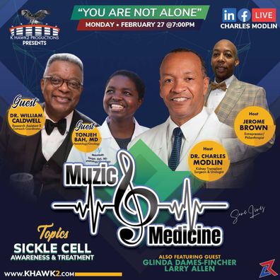 Our hosts Dr. Charles Modlin and Jerome Brown have a conversation about sickle cell awareness and treatment with Dr. Tonjeh Bah, Glinda Dames-Finch, Larry Allen and musical guest - choral conductor, Dr. William Caldwell.