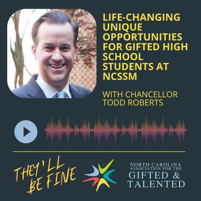 In this episode of They’ll Be Fine, we speak with Todd Roberts, the Chancellor of the North Carolina School of Science and Math. NCSSM was the first school of its kind, a public residential high school where students study a specialized curriculum emphasizing science and mathematics. Annually, NCSSM serves 11th and 12th grade students in its Residential program across two campuses, plus additional North Carolina students in the NCSSM Online program and through other distance education offerings. NCSSM also provides science and math enrichment opportunities for K-12 students, course content, and professional development for teachers throughout North Carolina.