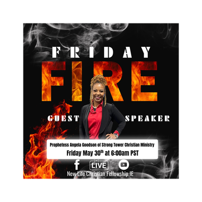 🔥 Friday Fire: Stand Your Ground Pt. 6 - Special Guest - Prophetess Angela Goodson of Strong Tower Christian Ministry🔥 Welcome to Friday Fire, a powerful series from New Life Christian Fellowship Inland Empire, created as part of our 50 Days of Consecration unto God, beginning on Resurrection Sunday. Each episode in this teaching series, "Stand Your Ground," is designed to equip and ignite believers with the Word of God, focusing on Ephesians 6:10–18: "Put on the whole armor of God, that you may be able to stand against the wiles of the devil." Through dynamic, Spirit-led messages, we dive deep into how to stand firm in faith, resist spiritual attacks, and walk boldly in the victory Christ has already secured for us. This is a call to spiritual readiness. It's time to suit up, stand strong, and stay on fire for God. Stand your ...