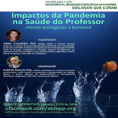 O ciclo de divulgação científica DIÁLOGOS QUE CURAM promove a CIÊNCIA e a CULTURA DE PAZ. Neste 21º encontro o tema será sobre OS IMPACTOS DOS RITMOS BIOLÓGICOS NA SAÚDE DO PROFESSOR EM TEMPOS DE PANDEMIA.