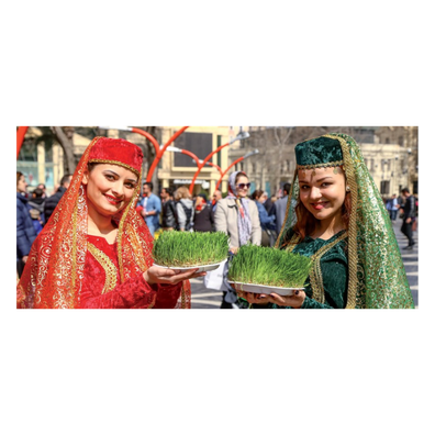 The provided text features an article from the Occasional Digest that details the cultural and historical significance of Novruz in Azerbaijan. This ancient festival, which translates to "New Day," marks the arrival of spring and the Persian New Year through rituals of renewal and purification. The source describes traditional customs such as spring cleaning, honoring ancestors, and preparing elaborate festal meals centered around symbolic decorations like wheat sprouts and painted eggs. Additionally, the text highlights the holiday's resilience, noting its transition from a prohibited celebration during the Soviet era to its current status as the nation's most vital publ ...