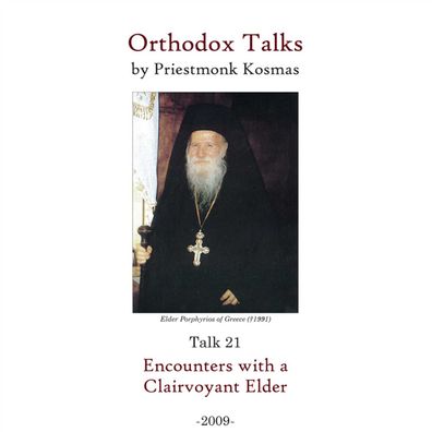 In this talk, Father Kosmas relates many accounts of Elder Porphyrios’ clairvoyance. He emphasises the importance of not confusing the gift of clairvoyance given by God with that of psychics, clairvoyants, mediums, fortune-tellers and astrologers. Many who are ignorant of the teachings of the Orthodox Church are deceived into believing that these imposters possess God-given powers, when in reality what power they have comes from the e ...