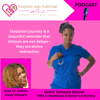 In this episode of Passion and Purpose with Pamela, we welcome Tanzania Skinner—a San Diego native whose journey reflects faith, resilience, and purpose. From earning her Mathematics degree at Hampton University to pursuing medicine and ultimately finding her calling in nursing, Tanzania’s path is a story of divine redirection. She continued her education with an MBA in Healthcare and a Master’s in Nursing from Johns Hopkins University, where she commissioned as a Second Lieutenant in the U.S. Army Nurse Corps.