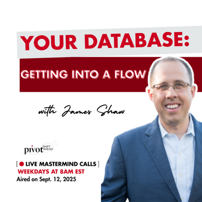 It is time for America's favorite game: Next Question - and spoiler alert: WE MADE IT! This mastermind completes the week focusing on your database. What a better way to end i than sharing how you stay in touch and get into a flow with your people. James Shaw asks that the Pivot: SHIFT Ahead community share their most creative, consistent and effective ways to remind your database YOU are their agent!