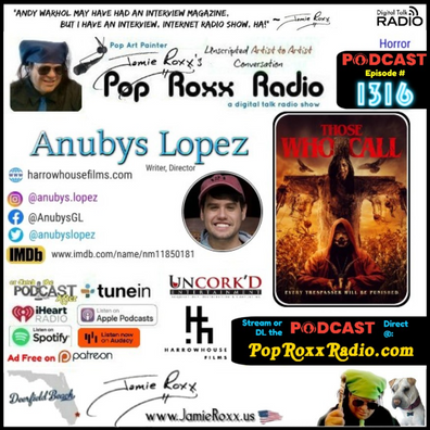 Pop Art Painter Jamie Roxx (www.JamieRoxx.us) welcomes Anubys Lopez, Writer, Director (Those Who Call; Horror) to the Show!