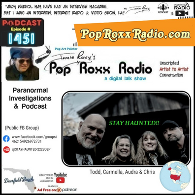 Pop Art Painter Jamie #Roxx (www.JamieRoxx.us) welcomes Stay Haunted (Todd, Carmella, Audra & Chris) (Paranormal Investigations & Podcast) to the Show!