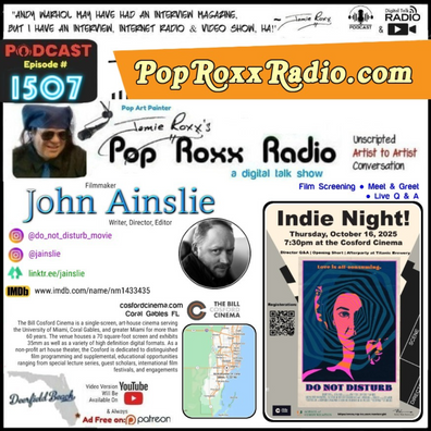 Pop Art Painter Jamie Roxx ( www.jamieroxx.us ) welcomes Filmmaker, John Ainslie, Writer, Director, Editor (Do Not Disturb, 2023, Horror | Film Screening, Meet & Greet, Live Q & A) to the Show!