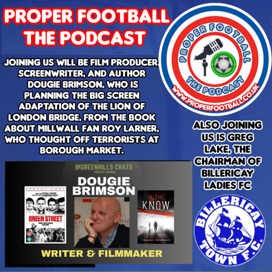 We were joined by special guests, Dougie Brimson the English film producer, screenwriter and author who has written 17 books including the classic study of hooliganism, Everywhere We Go, Behind the Matchday Madness and Green Street and currently writing the big screen adaptation of the Lion of London Bridge, the story of Millwall fan Roy Larner who heroically fought off the terrorists at Borough market, along with Greg Lake the Chairman of Billericay Town Ladies, plus resident ex pro Nigel Callaghan talking all things football.
