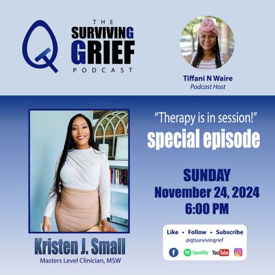 During this therapeutic conversation, Kristen J. Small (Therapist, Consultant, Speaker, & Writer) sat down to share her grief story and for a Q/A session to educate us on grief therapy, healing practices, mental wellness & the overall connection between the mind and body. Kristen believes we all are capable of living full, healed, wholehearted lives! We hope you enjoy this episode.
