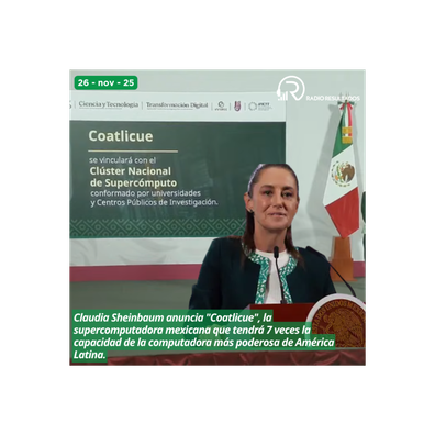 - Claudia Sheinbaum anuncia "Coatlicue", la supercomputadora mexicana que tendrá 7 veces la capacidad de la computadora más poderosa de América Latina.