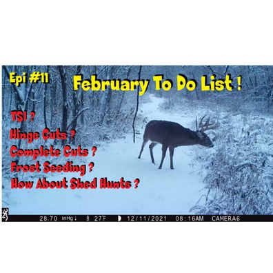 This week we talk about what we see as the top February land projects. Karl, and Mike touch on hinge cutting, complete cuts on trees. Is the right time, will it improve your property? Also some other TSI projects. When do we think is the best time to start to shed hunt? What about frost seeding do you start now or should you wait?