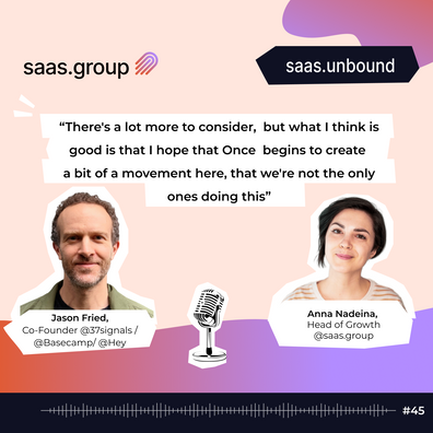 saas.unbound is a podcast for and about founders who are working on scaling inspiring products that people love brought to you by https://saas.group/. In this episode #45, we are talking with Jason Fried, Co-Founder of 37signals, Basecamp, Hey.com.