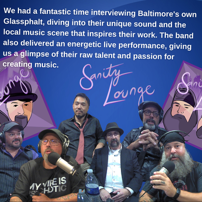 🎶 New Episode Alert! 🎶 We had an amazing time with Baltimore's own Glassphalt on this latest episode of Sanity Lounge! 🎤🔥 They performed some incredible live music and sat down with us for a laid-back interview to chat about their journey, creative process, and what's next for the band. 🎸🥁