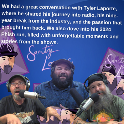 Had an awesome time chatting with WTMD’s own Tyler Laporte on the latest episode of Sanity Lounge! 🎶 We dove into his journey into radio, the nine-year break that shaped his perspective, and of course, his epic 2024 Phish run (seriously, the stories are wild!). Tyler's passion for local music and his connection to the community made for a great conversation. Don't miss this one! Listen in as we get into his world of music and beyond. Available now wherever you get your podcasts! 🎧
