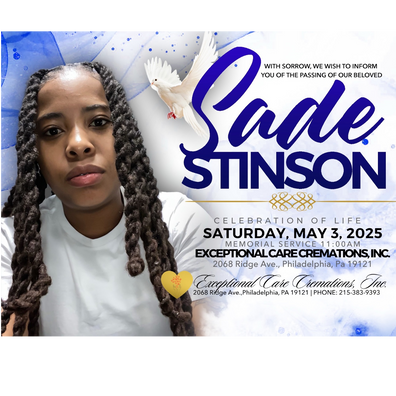 Life just took a major turn for the Sisterhood family. We are celebrating the life of Sade Stinson. ‘’DaeDay’’ fashion goat, part 1 of 2 foot clothing line TronMaru. Sister of 5, daughter to an Amazing mother. Friend to many, lover to 1. The lives she touched in her 38 years will never be forgotten. The love we shared will always be my favorite memory.