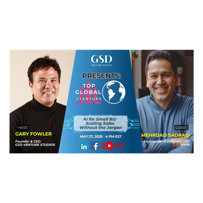 GSD Presents: Top Global Startups by Gary Fowler: AI for Small Biz: Scaling Sales Without the Jargon with Mehrdad Sadraei May 27th, Tuesday