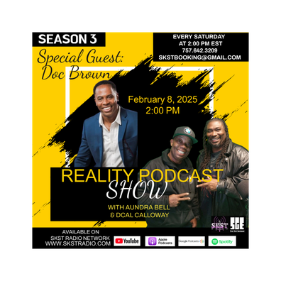 🎙️ Reality Podcast with Aundra Bell & Dcal Calloway 🎙️ 🔥 Special Guest: Doc Brown from The Balcony Podcast 🔥 📅 February 8, 2025 | 2:00 PM 📍 Streaming LIVE on SKST Radio Network & Podcast Studios 🌐 www.skstradio.com Don't miss this powerful conversation as we dive into real talk, raw truths, and unfiltered perspectives. Tune in and be part of the discussion! 🎧✨ #RealityPodcast