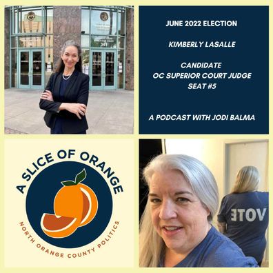 In this episode, Jodi speaks with Kimberly LaSalle, a candidate running for OC Superior Court. Kimberly has appeared before our courts as an attorney for 25 years. Additionally, she has I served our two largest counties as both a Deputy District Attorney and a Deputy Public Defender for almost a decade. After almost a decade of public service in the criminal law arena, Kimberly entered private practice to raise a family and represent those in need. She advocates for children with autism and other disabilities, including one of her own sons.