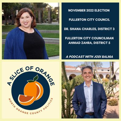 Jodi talks with two candidates for Fullerton City Council, Dr. Shana Charles, candidate for District 3 and Fullerton City Councilman Ahmad Zahra, running for re-election in District 5. They talk about what they've learned walking their districts, what they want to do if elected, and how to build civic engagement in Fullerton.