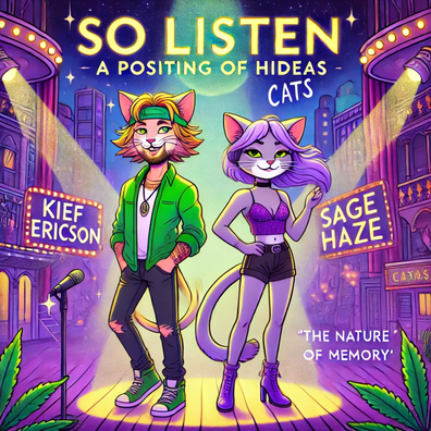 Like Grizabella’s haunting solo ‘Memory’ in Andrew Lloyd Webber’s Cats, this week’s episode of So Listen: A Positing of Hideas delves into the fascinating ways our minds recall the moments that shape us. Hosts Kief Ericson and Sage Haze bring an eclectic blend of whimsy and introspection, exploring memory from both a scientific and personal perspective. They discuss how recollections can morph over time, the impact of sensory cues on what we remember, and the role nostalgia plays in our daily lives. Through anecdotes, research tidbits, and philosophical musings, Kief and Sage spark a lively conversation about how our past experiences continue to inform who we are in the present—and perhaps even offer a glimpse into who we might become.