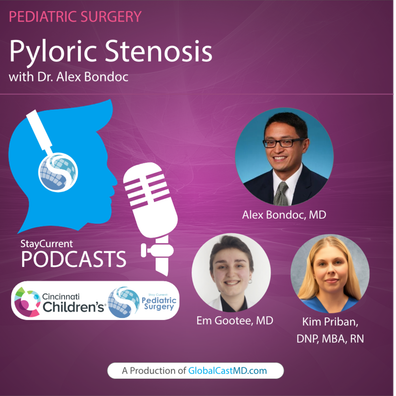 In this episode, we review the symptoms, diagnosis and management of pyloric stenosis with Dr. Alex Bondoc, pediatric surgeon from Cincinnati Children's.