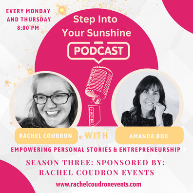 The episode of "Step Into Your Sunshine" features Rachel Coudron, a boutique owner and event coordinator, discussing neurolinguistic programming (NLP) with guest Amanda Box, a coach and trainer.