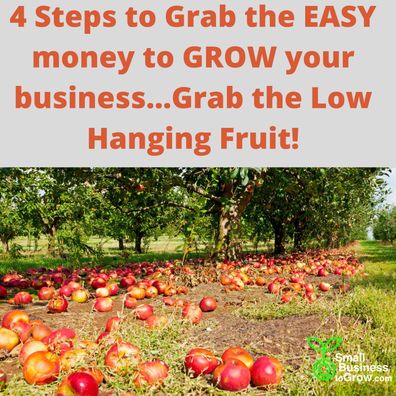 4 Steps to Grab the EASY money to GROW your business…Grab the Low Hanging Fruit! Make sure you take time to grab that low hanging fruit… and be sure to pick up the fruit you may be stepping over. It is EASY Money. It is easy to get caught in the daily routine business operations. Some time spent on marketing sales. But what about the easy money? This is the low hanging fruit and the easy money. 4 Steps to Grab the EASY money to GROW your business…Grab the Low Hanging Fruit! 1). Systemize the follow up with current and former customers. This means play the long game. Strive to earn a customer and keep them long term. 2). Over Deliver Value and Maintain Lines of Communication. Want to keep customers long term and turn them into walking billboards marketing your business? Of course, you do, then overdeliver! 3). Make sure website, Phone, Email and S ...