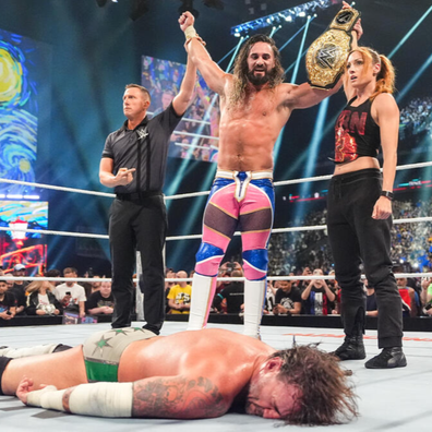 WWEWrestlingPLESeth RollinsBecky LynchRoman ReignsLA KnightLogan PaulBronson ReedJey UsoBron BreakkerThe Street ProfitsProfessional WrestlingMichael ColeWorld Heavyweight ChampionshipWyatt Sick6Bo DallasErick RowanDexter LumisJoe GacyCM PunkWade BarrettWWE Tag Team ChampionshipsWomen's Intercontinental ChampionshipAdam PearceSheamusJohn CenaThe VisionNikki BellaClash in ParisRusevParis, France