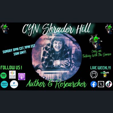 On this episode the guys from Talking With The Source are joined by author in Paranormal Researcher Cyn, Schrader Hill;Cyn Shrader Hill, Founder of Elk Valley Paranormal and self-published author of "Whispers in the Dark: True Ghost Stories and Eerie Tales," "Web of Terror: A Short Story Collection," "They're Speaking. Are You Listening? My Most Compelling EVPs," and "It's Not Goodbye - Signs from Beyond" is a native of Fayetteville, Tennessee, home of the very haunted Old Fayetteville (Lincoln County) Hospital. Cyn is also a co-host on legitpodcasts.com appearing on the Sunday evening Paranormal show, the Paranormal News on Wednesday night, and occasionally on the Thursday night shows Paranormal Clips and Paranormal 101.Sensitive and empathic, she has known 'others' were around her sin ...