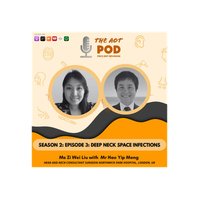 This episode welcomes Mr. Hao Meng, ENT ST5 registrar in North Thames Deanery and Ms Zi Wei Liu, head and neck consultant, currently practising in Northwick Park Hospital. She is also the local London North West Head and Neck MDT chair and is the current clinical lead of Northwick Park Hospital ENT department and talks to us today about the assessment and surgical management of deep neck space infections