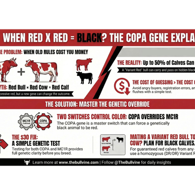 For decades, Holstein breeders operated on one simple rule: black dominates red. It was genetics 101—comfortable, predictable, and wrong. In 2015, researchers discovered the COPA gene, a genetic "override switch" that can make animals express red regardless of their underlying color genetics. The problem? A Variant Red bull bred to red cows can still throw 50% black calves. If that's happened in your barn and you couldn't explain it, this episode will change how you think about color inheritance—and save you from costly breeding mistakes.