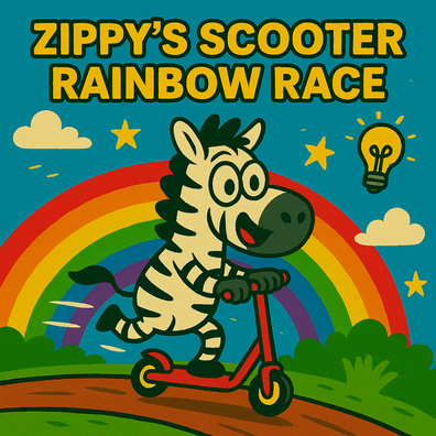 "Zippy's Rainbow Race," a children's story about an extraordinary scooter named Zippy. Zippy's unique ambition is to race rainbows, a goal he pursues with determination alongside his rider, Lila the bunny. The narrative describes their exhilarating chase, culminating in Zippy achieving his dream and gaining a lasting, colorful transformation.