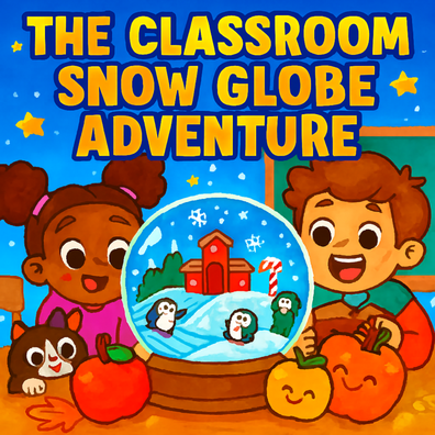 "The Classroom Snow Globe Adventure," where a class is magically transported inside a snow globe after a student taps it. Inside this wondrous, non-cold winter setting, they encounter glittering slides, friendly animals, and marshmallow snowballs. The adventure abruptly takes a perilous turn when they realize they are in danger of being erased by a giant eraser from their real classroom, necessitating quick action.